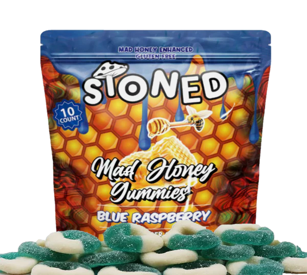 Stoned Mushroom Gummies – Mad Honey Gummies (Raspberry Flavor) are premium, branded gummies designed for adult consumers seeking a fruit-forward alternative edible with a bold raspberry taste, modern packaging, and clear product positioning.